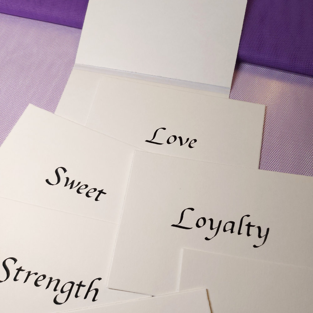 Een uniek huwelijksaanzoek in een doosje met zes gekalligrafeerde termen om iemand ten huwelijk te vragen! Een handgemaakt kalligrafisch object.